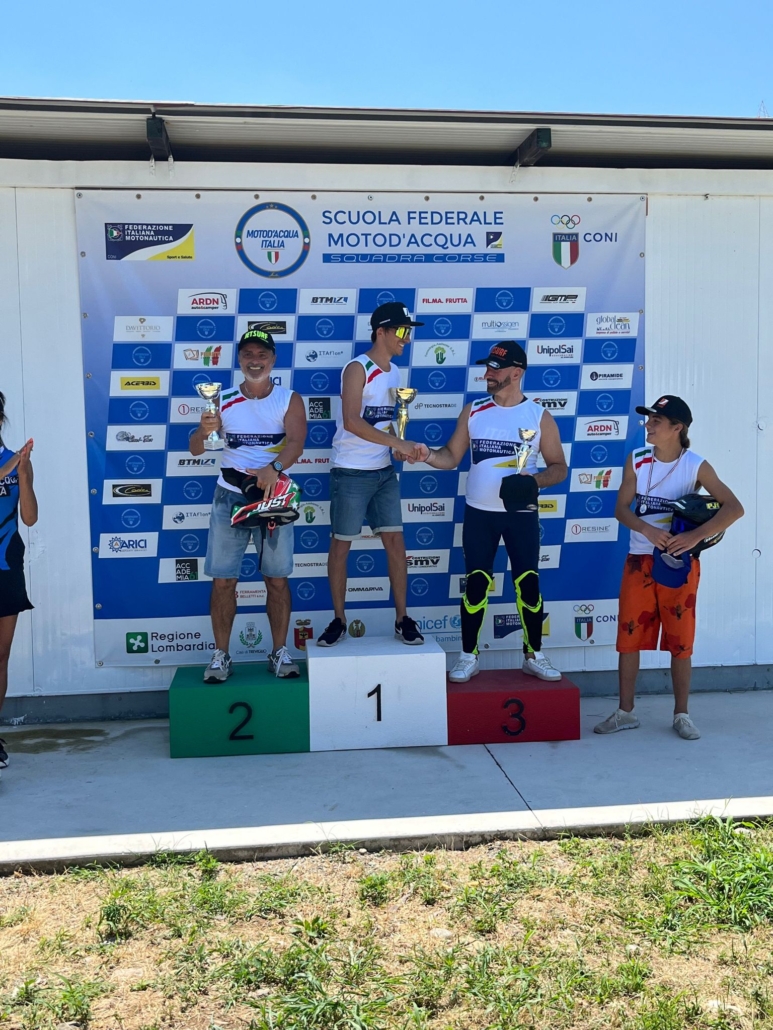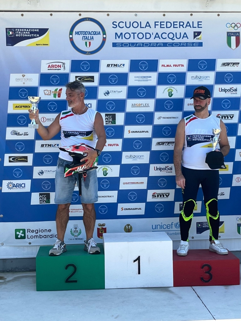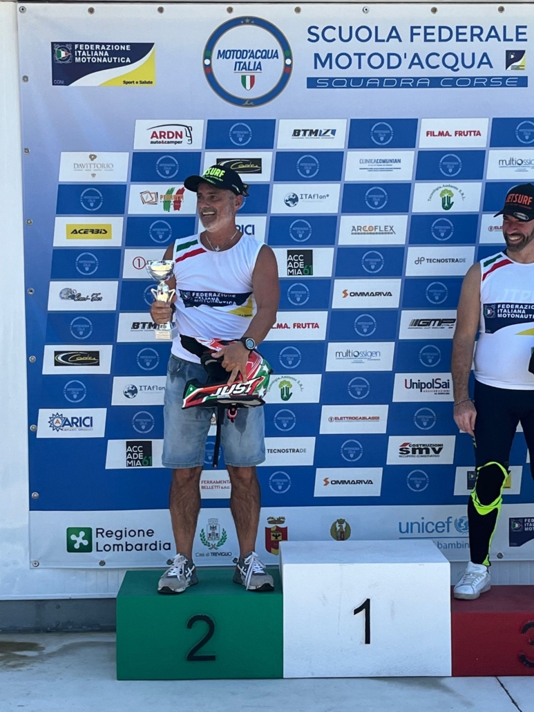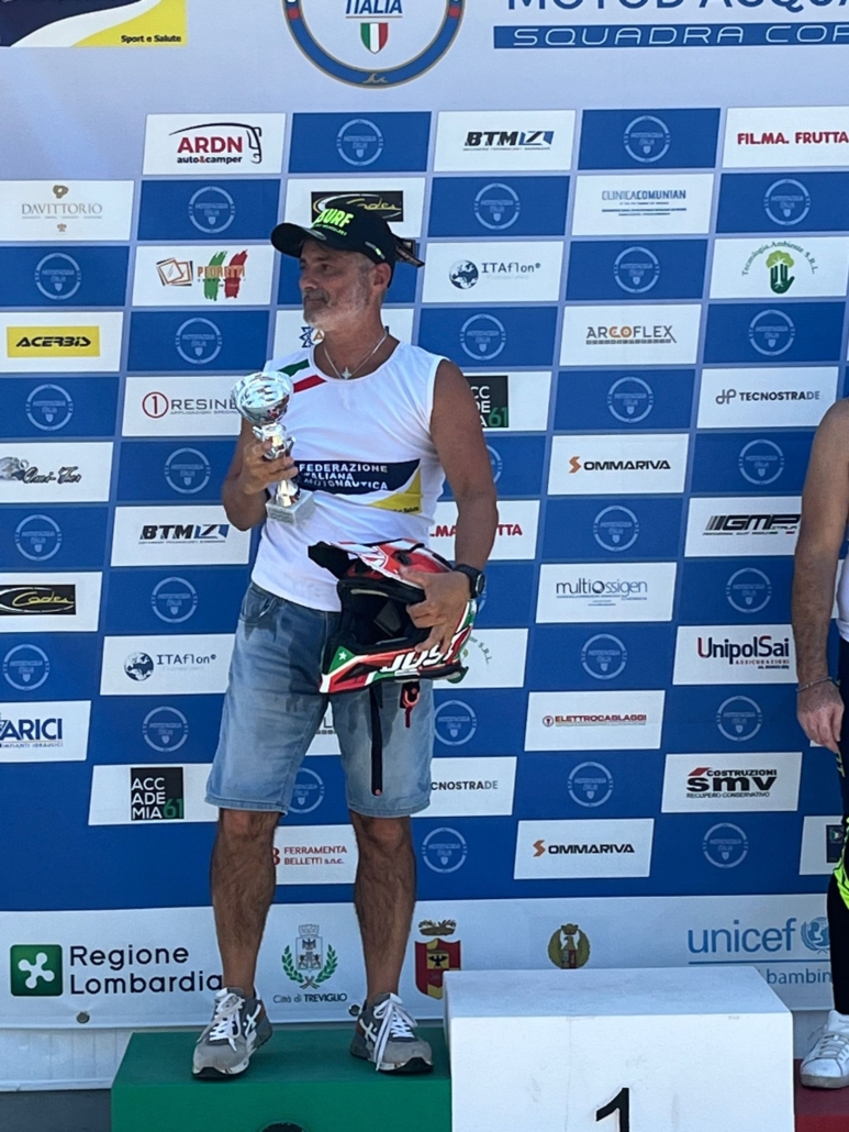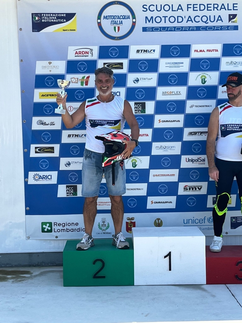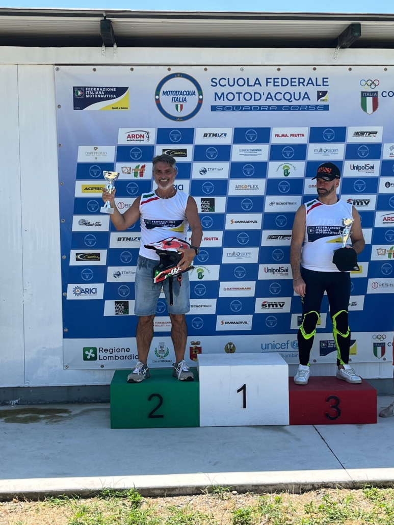 Grande prova del team Jetqualityform con il pilota e tecnico societario Antonio Filippini che al lago di Treviglio in provincia di Bergamo il 9 luglio 2023 ha conquistato il secondo posto al Campionato Italiano di Motosurf.